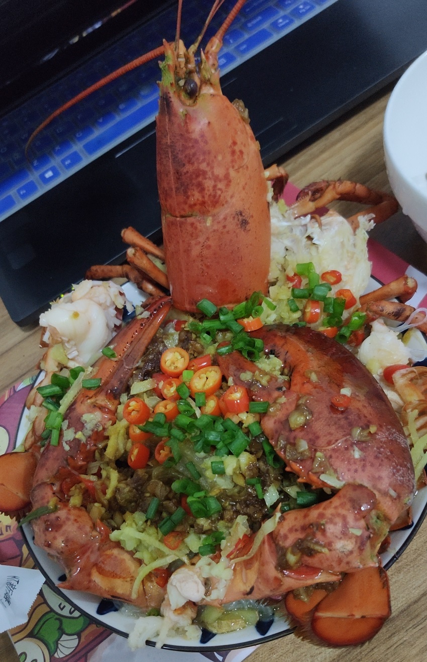 头一回吃这么大的龙虾,个头很大。价格也是有点小贵吧