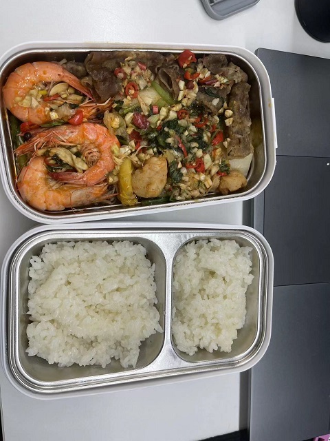 开始带饭啦,突破~~ 感觉带饭好爽,就是热饭人多的时候就很慢~~
