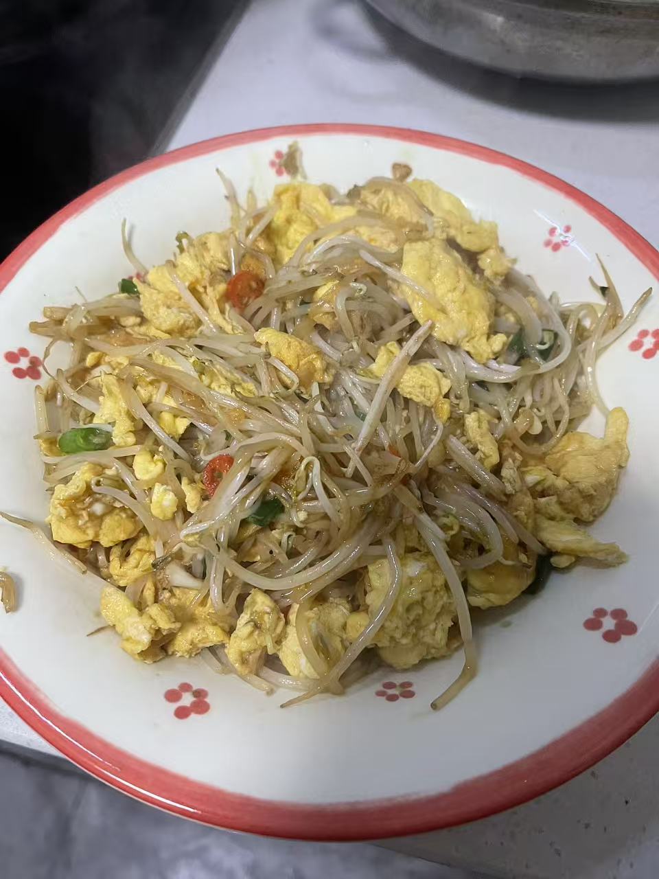 豆芽炒鸡蛋,甜宝说炒豆芽要放鸡蛋,以前只吃过清炒豆芽,原来加蛋也挺好吃的