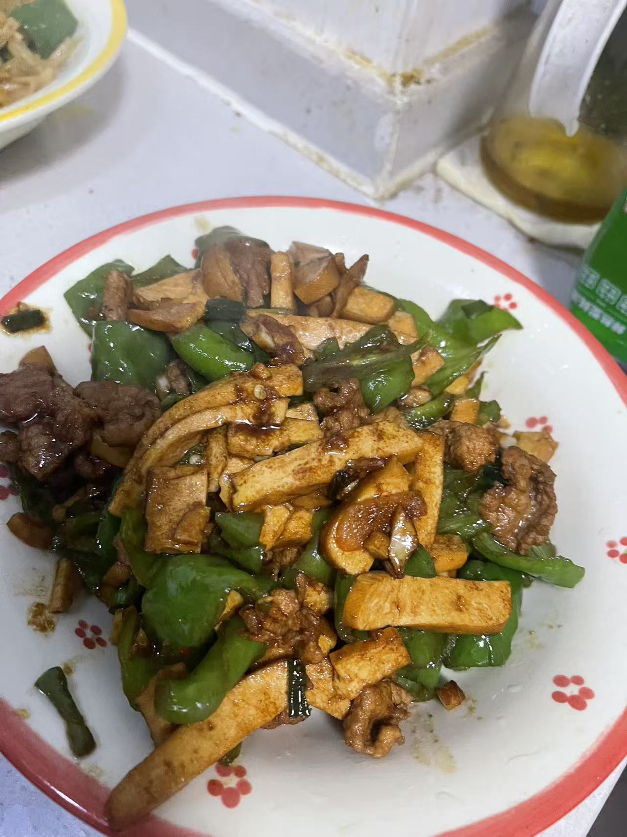 辣椒香干炒肉,以前奶奶总说爷爷买菜只会买豆腐香干,如今我也是老买香干也被媳妇说过